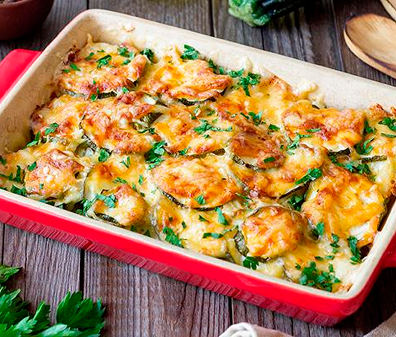 Gratinado de Abobrinha com Salmão Defumado